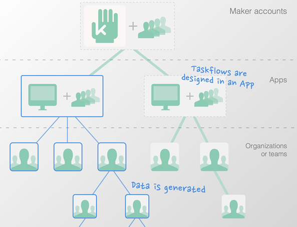 As the Maker of your ‘Maker Account’ you automatically have access to all its Apps and their sub-groups called Organizations and/or Teams.
